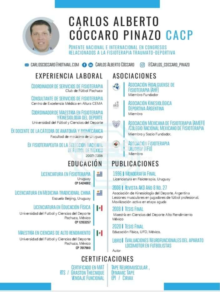 Este taller está dirigido a deportistas y a profesionales vinculados al deporte, estará a cargo del Mtro. Carlos Alberto Cóccaro Pinazo, ponente nacional e internacional en congresos relacionados a la fisioterapia traumato – deportiva.