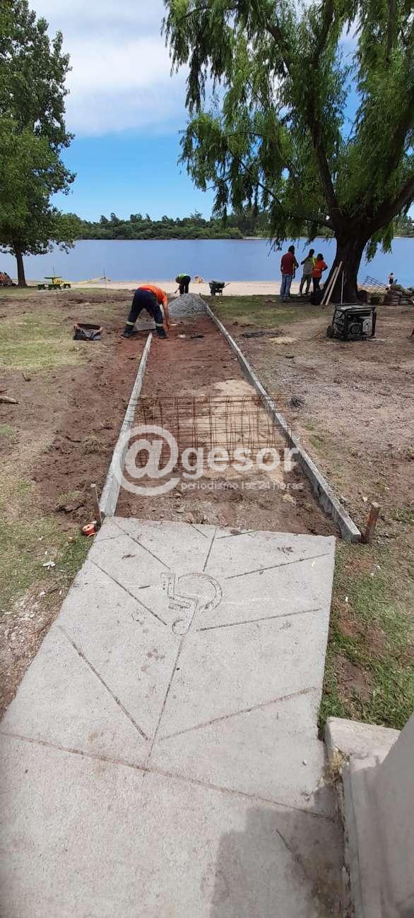 En el marco de las tareas de reacondicionamiento de zona costera en Mercedes, el departamento de Arquitectura construye rampas de accesibilidad hacia la playa en El Raviol.