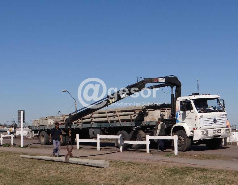 En las últimas horas llegaron a la ciudad de Dolores una importante cantidad de columnas de hormigón, las cuales serán distribuidas para la posterior iluminación del tramo comprendido desde la entrada a la ciudad por ruta 96 hasta la intersección de Hermanos Ruiz y Simón del Pino.