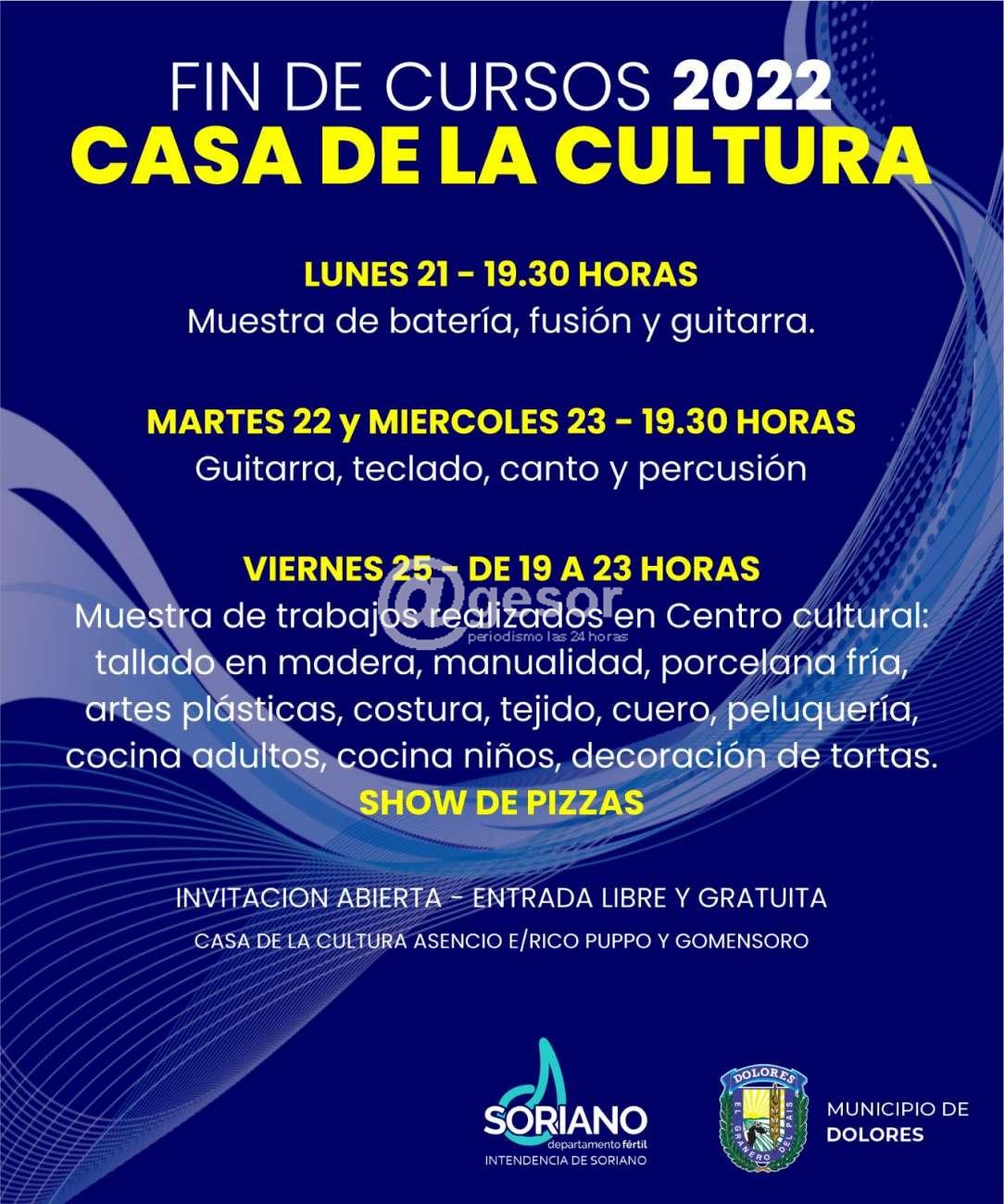 Viernes 25, de 19 a 23 horas. Muestra de trabajos en Centro cultural: tallado en madera, manualidad, porcelana fría, ares plásticas, costura, tejido, peluquería, cocina adultos, cocina niños, decoración de tortas.