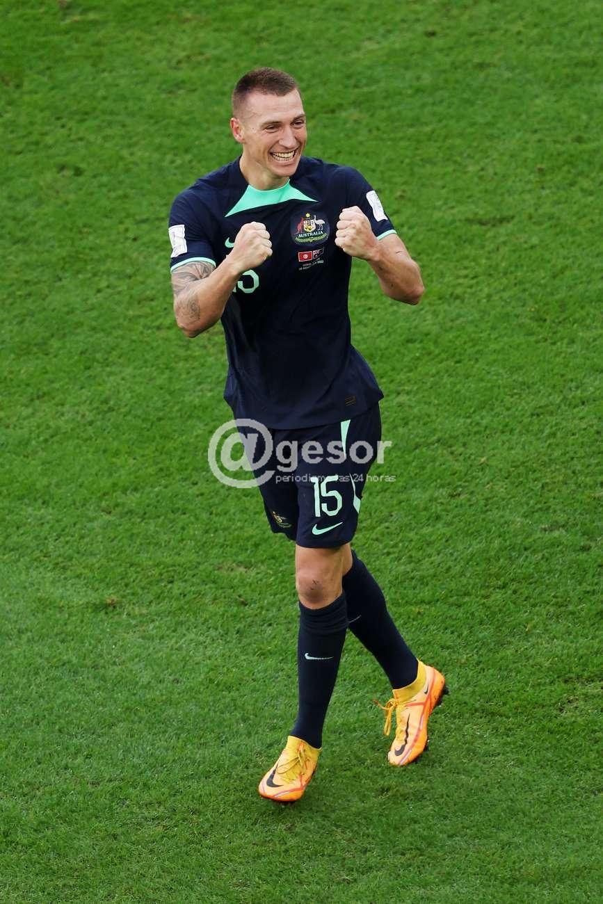 Australia también defendió heroicamente, nadie más que Harry Souttar. El gigantesco defensa nacido en Escocia se ganó los abrazos y choca las palmas de sus compañeros de equipo al final de la primera mitad cuando se lanzó a bloquear a Mohamed Drager con un gol aparentemente inevitable.