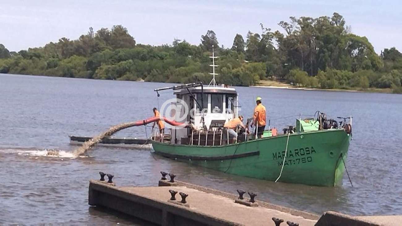 Asimismo, continúa la recarga con arena utilizando la balandra “María Rosa”, esparciendo arena desde el río frente a “Los Michis, lo que en la faja costera se complementa con palas cargadoras que nivelan la arena depositada por camiones en la playa.