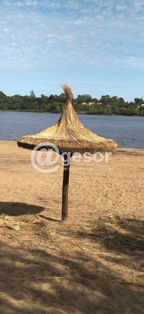 Actualmente se están instalando sombrillas con estructura de madera y quinchos en playas “Los Michis” y “El Raviol”, tarea que realiza personal de Talleres Municipales.