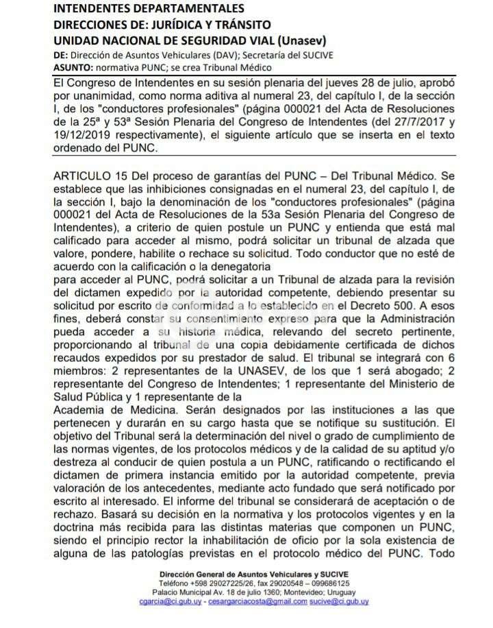 Después de 11 meses que veníamos trabajando la problemática que hiciera pública Mario Sauco y afecta a todos los conductores de visión monocular ya que no se les iba a renovar más la libreta profesional, el Congreso de Intendentes aprobó una resolución en la cual estos conductores en caso de reclamarlo podrán serán evaluados y si demuestran estar aptos obtendrían nuevamente la libreta profesional.