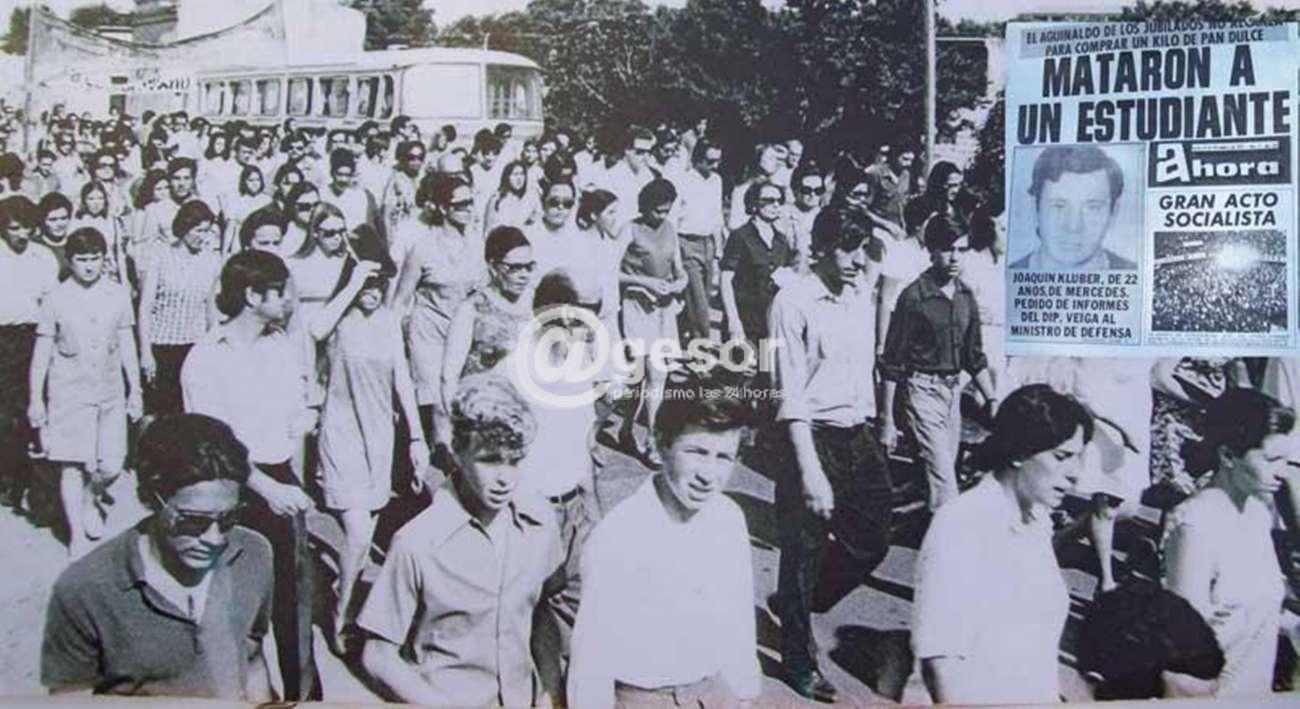 En tanto Néstor Gurruchaga remarcó “como Comisión de Memoria nos congratulamos que esto esté pasando porque es parte de la lucha contra la impunidad. Un mercedario asesinado en plena democracia, ejerciendo un derecho democrático como es oponerse a una ley que estaba en proceso; y que lo fusilaron por la espalda”. El caso de Joaquín Kluver tomó notoriedad ya que los diputados Walter Martínez Gallinal (Unión Popular, diputado por Canelones) y Ariel Díaz (diputado por Soriano, PDC) presentaron el caso en la Cámara, haciendo comparecer al Ministro del Interior Armando Malet. Pero la investigación policial y judicial nunca citó a los testigos, siendo uno de los casos todavía impunes. A continuación en base a documentos de la época reconstruimos esa historia que conmovió a la sociedad mercedaria. Pico, el estudiante de Agronomía Joaquín era un mercedario que estudiaba agronomía en Montevideo, y que militaba en el Partido Comunista Revolucionario (PCR). Como tantos jóvenes de esa época encaró su militancia política con compromiso y vehemencia. Le decían Pico y apenas tenía 22 años cuando fue baleado por la espalada por los militares. El 6 de diciembre de 1972, como tantas veces, junto a algunos compañeros, salió a recorrer las calles repartiendo volantes en rechazo a la Ley de Educación, cuando fue interceptado por una patrulla militar. Una feria vecinal congregaba varias personas que vieron a los muchachos correr, perseguidos por los militares, desparramando volantes por la calle. La carrera comenzó en Carlos María Ramírez y Agraciada. Joaquín es detenido prácticamente a la vuelta de la esquina, en Agraciada y Freire, donde es subido a un “camello” (vehículo militar de la época). Momentos después el estruendo de un disparo sacudió el ambiente: un militar apuntó a la espalda de Joaquín cuando estaba tirado en el piso del vehículo, y le desarrajó un disparo que ingresó a la altura de la cintura para describir un trayecto ascendente y salir a la altura del pecho. Después hizo otro disparo. La primera información que recibió la familia fue que había sido detenido, pero que todo estaba bien, pero recién 35 horas después su cuerpo es entregado a los familiares. Había sido sometido a una intervención quirúrgica en procura de salvarle la vida. Además en sus manos tenía rastros de haber sido sometido a la prueba de parafina en busca de pólvora que pudiera denunciar que empuñó un arma. Por supuesto que nunca disparó un arma. “Todos los informes recogidos por MARCHA entre quienes conocieron a Kluver afirman su seriedad habitual. “No lo imagino siquiera tirando una piedra”, afirmó un joven que fuera su compañero en el hotel Imperia” comenta el entonces periodista Guillermo Chifflet (Marcha 15/12/1972).