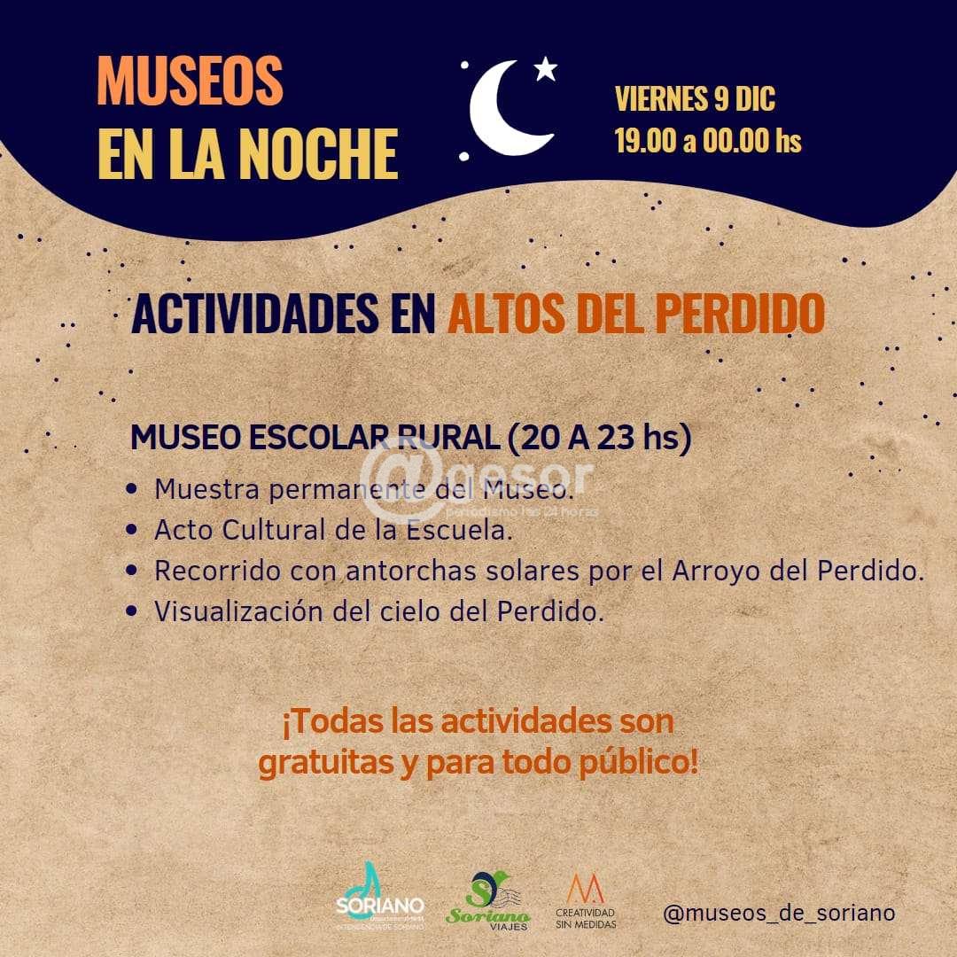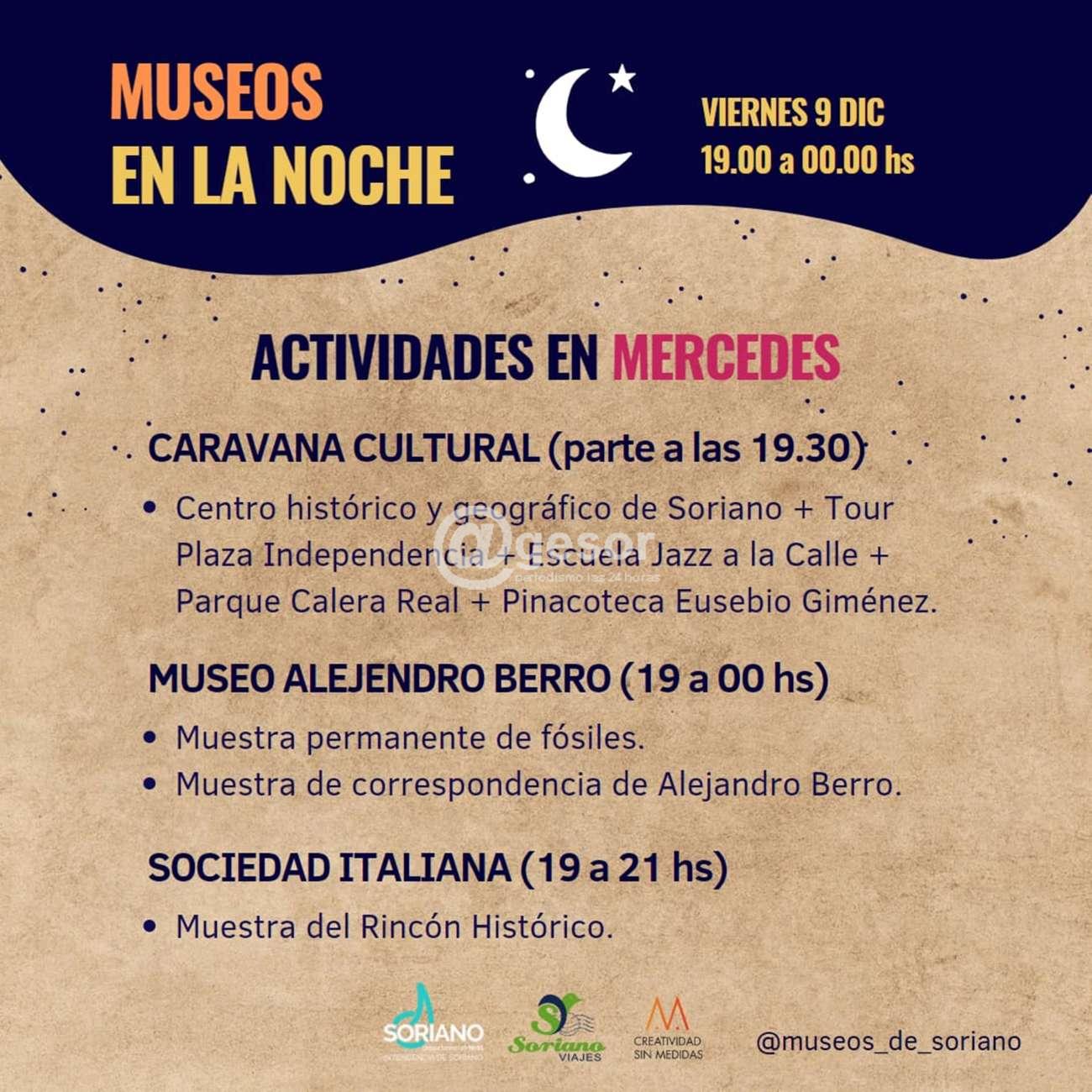 En el marco de la programación de "Museos en la Noche" este viernes 9 de 19.00 a 24.00 horas se prevén diferentes actividades en Soriano.