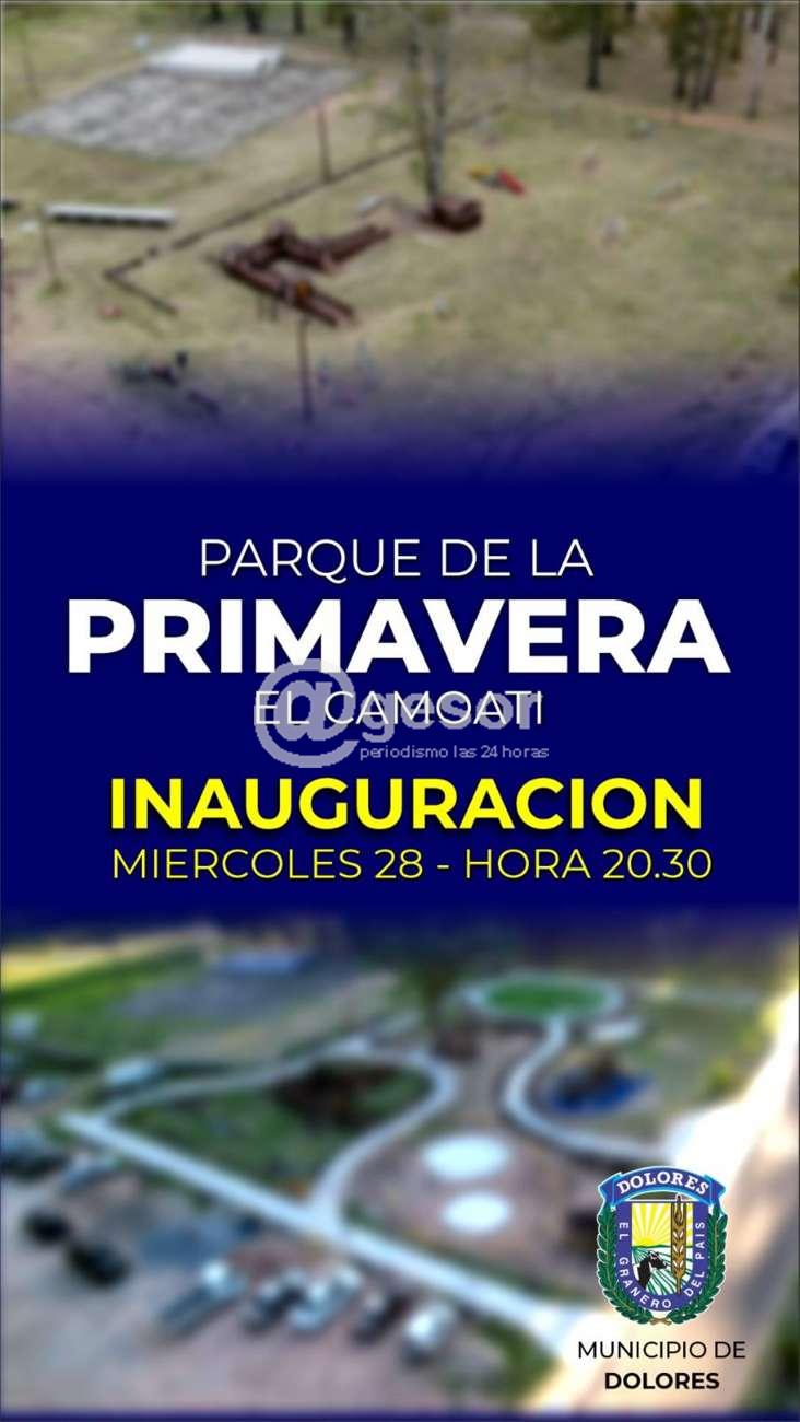 Este miércoles 28 de diciembre estará inaugurándose el Parque de la Primavera, ubicado en la zona de El Camoatí, obra llevada adelante por el Municipio de Dolores.