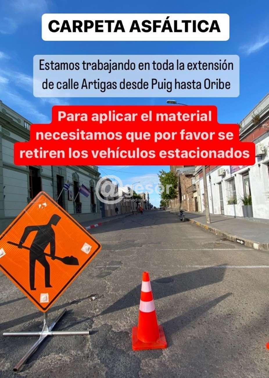 Desde el Municipio de Dolores se comunica a la población que en virtud de los trabajos de colocación de carpeta asfáltica en toda la extensión de calle Artigas de Puig hasta Manuel Oribe, que no puede haber vehículos estacionados en ese trayecto en la vía pública.