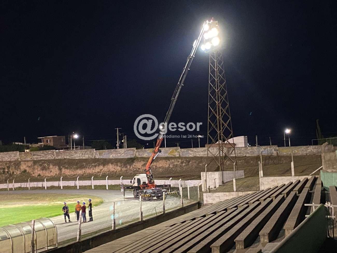 Es por ello que personal de la comuna trabajó en cada una de las cuatro torres utilizando una grúa de gran porte debido a la altura de las mismas. La primera etapa fue el retiro de los focos que no funcionaban, dejando los que estaban operativos e incorporando 20 focos LED (4 de 750 watts y 16 de 500 watts) que integran el sistema lumínico. De esta manera se combinaron los focos actuales con las nuevas luminarias incorporadas.