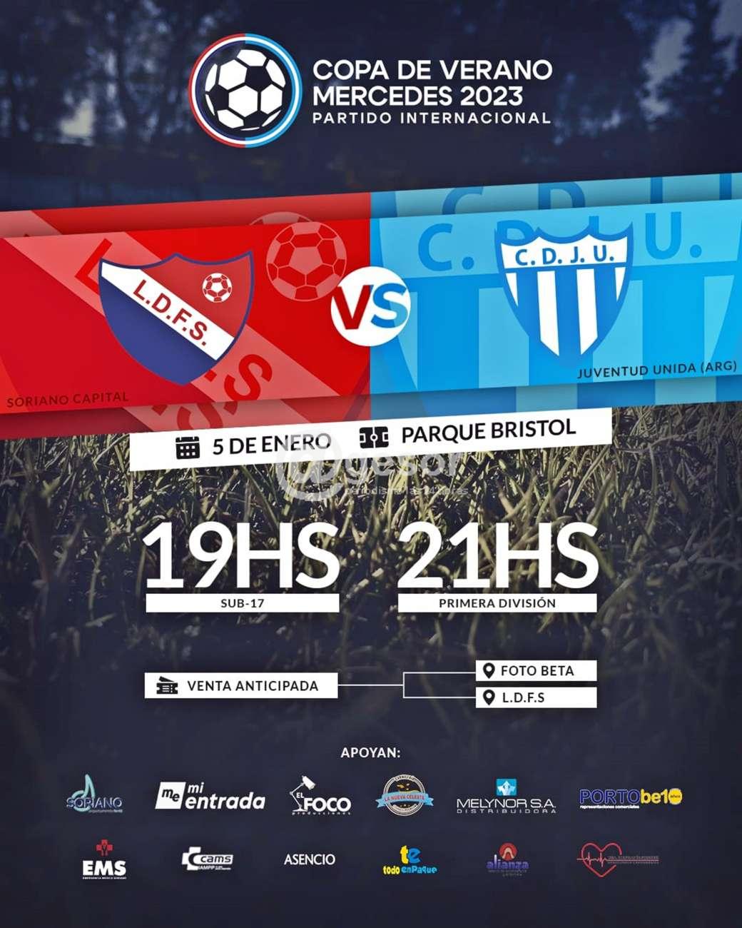 En parque Bristol se estará realizando un partido internacional este jueves 5 de enero entre la Selección de Soriano Capital y Juventud Unida de Gualeguaychú. Dicho encuentro forma parte de la preparación de la selección mercedaria para el próximo torneo de OFI.