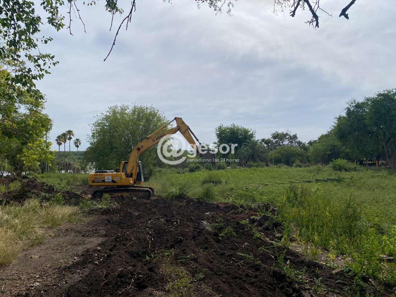 En ese sentido, maquinaria vial pesada realiza un importante movimiento de tierra en el lago, el que se está ampliando dado que se llevará de las actuales medidas de 56 m. x 35 m. a 91 m. x 48 m. en el sector de mayor amplitud del mismo.