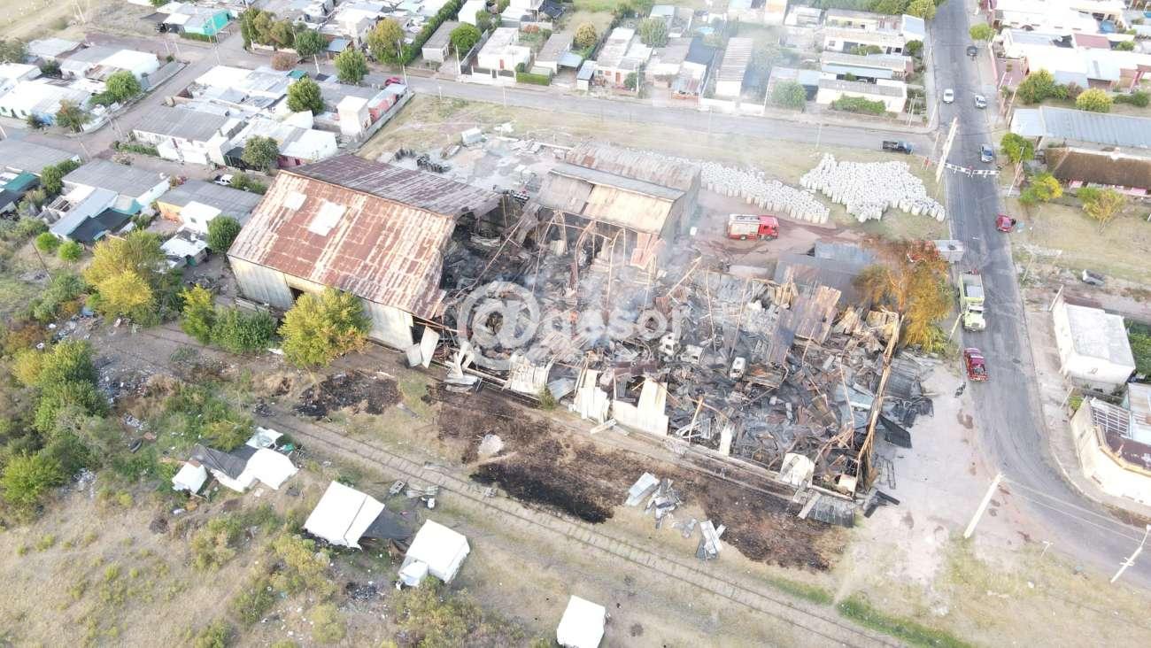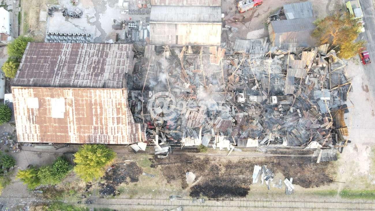 Cuando apenas amanecía, a través del dispositivo aéreo de nuestro compañero Enzo Ortega Photography, @gesor llegó hasta la zona del desastre allí en Serafín Rivas y Francia en la zona Este de Mercedes donde se ubica el centro logístico de la empresa Constructora Soriano, que resultara gravemente afectado por el fuego generalizado ocurrido en la noche de este martes por causas que se investigan aún por Bomberos.