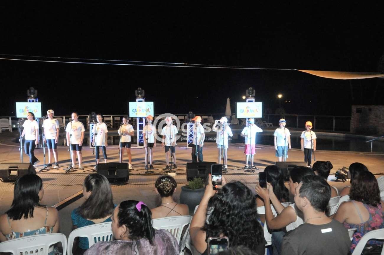 En la oportunidad, los ya tradicionales presentadores del Carnaval sorianense José María "Pepe" Romero y Silvana Martínez, con su habitual sobriedad, fueron informando de las diferentes actividades y a la vez presentando por su orden a los Futuros Artistas Carnavaleros que actuaron, mostrando parte de lo que a lo largo del año han aprendido en los talleres y posteriormente el desfile de cada una de las 16 postulantes a Reina del Carnaval de Soriano.
