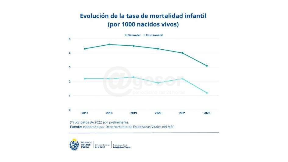 La mortalidad infantil mide los fallecimientos de niños menores de un año en relación al número de nacimientos totales del país expresado cada mil nacidos vivos. Se incluye en este concepto la mortalidad neonatal- la que ocurre antes de los 28 días de vida, la posneonatal, que ocurre entre los 28 días de vida y el año.