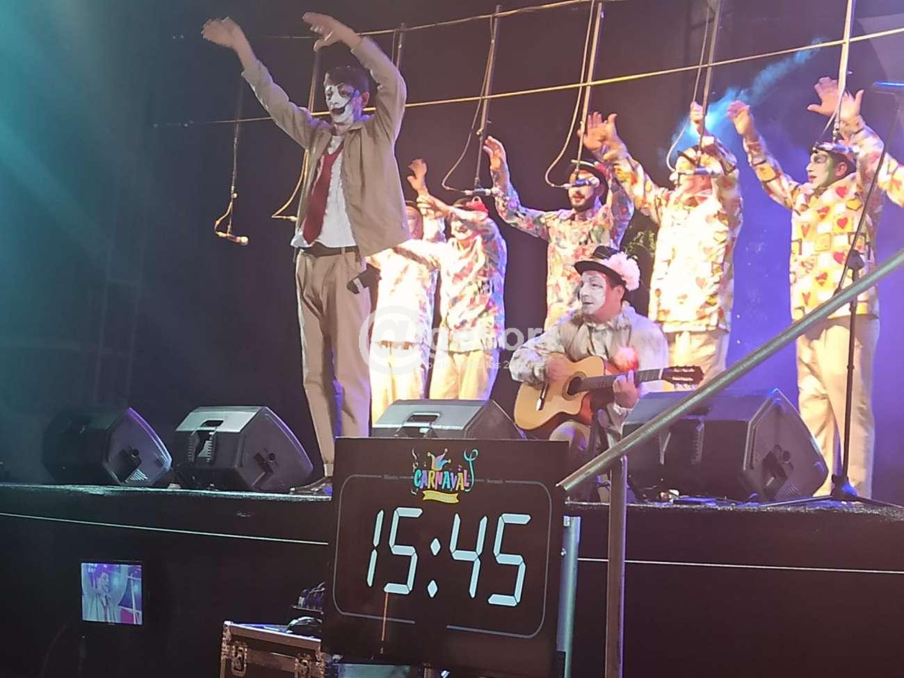 Siempre con la murga cantando, tocando temas de la actual tanto a nivel nacional como también departamental cuestionando, con muy buena participación también de Marcos Montiel y la sobriedad de Marcelo Barja en cada una de sus intervenciones.