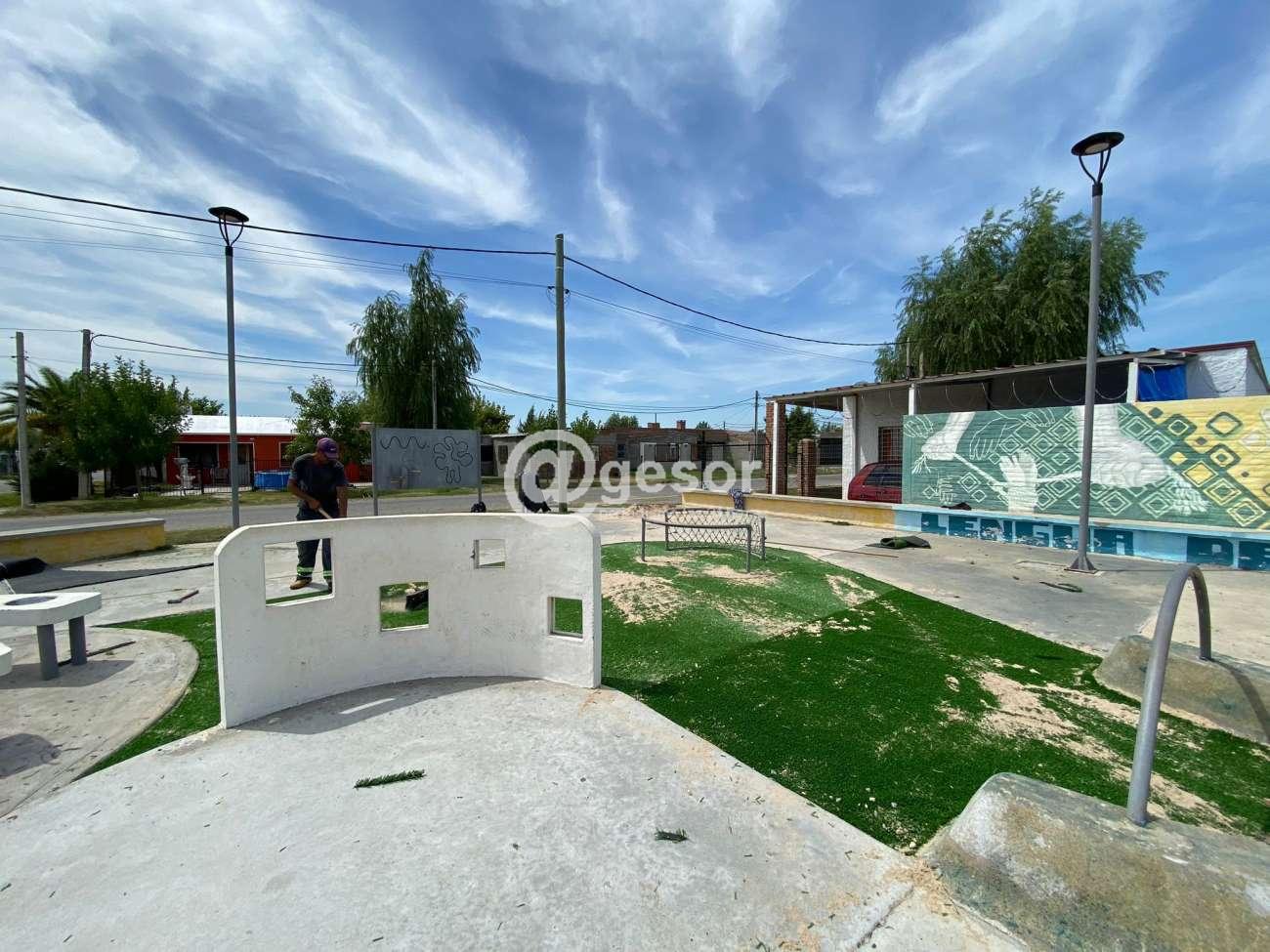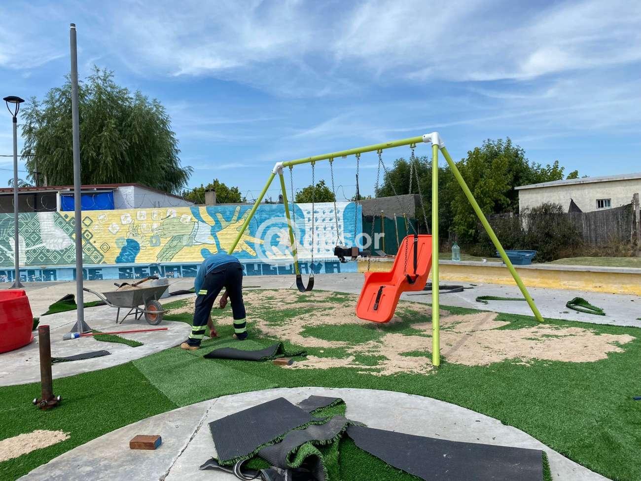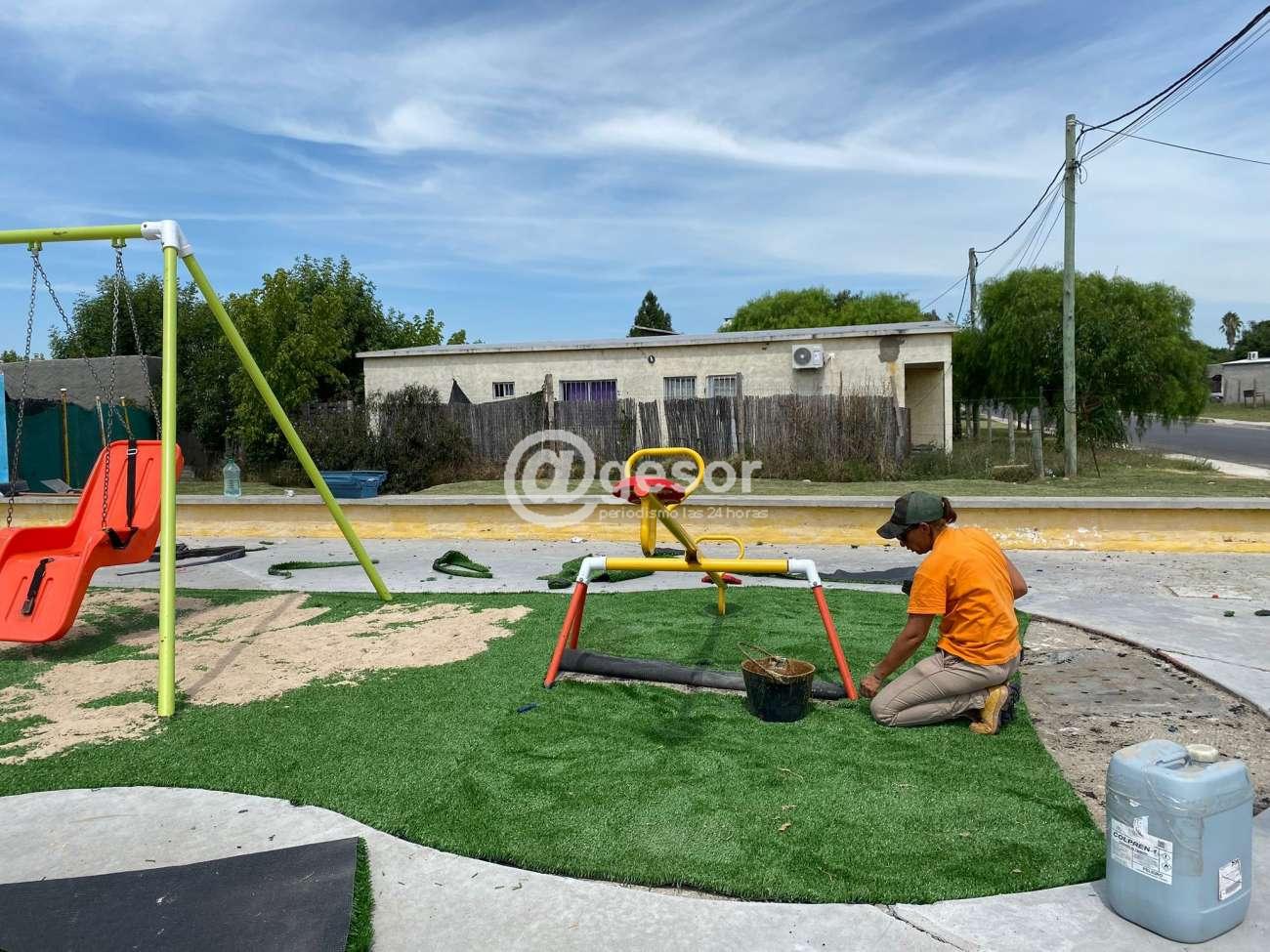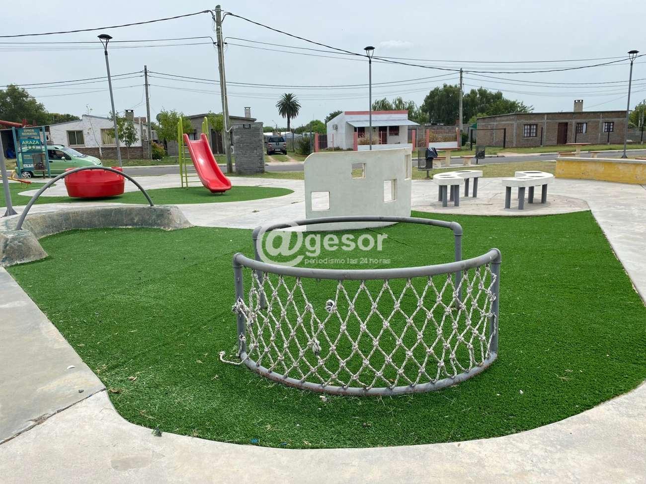 Desde el Municipio de Dolores se informa que se han realizado mejoras en la plaza Arazá en el barrio Altos de esta ciudad, habiendo aportado un espacio de entretenimiento para los vecinos de la zona, con juegos inclusivos y en esta oportunidad apostando a colocar césped sintético que aporta color verde a este espacio y más seguridad contra posibles golpes de los niños al jugar.