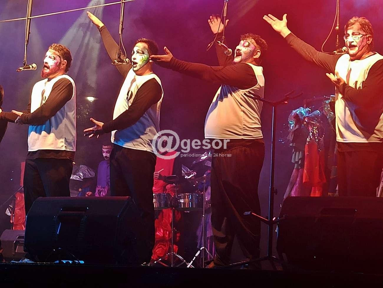 Logra una mejor comunicación con el público en el cuplé de "Los custodios" y por allí hasta alguna risa arranca a la concurrencia, pero lo esencial es el canto que a lo largo de su actuación es lo que más se destaca, al igual que la musicalidad y por supuesto varias voces individuales resaltando especialmente en solos que realizan en la parte final tanto Alexander Silva como Alejandro Garrasino que le dan realce con esas históricas voces murgueras.