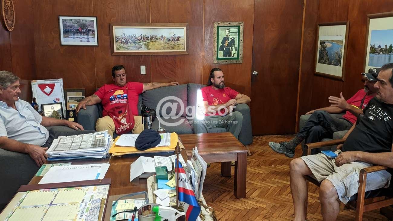En la mañana de este jueves el intendente Guillermo Besozzi recibò a dirigentes del SUNCA, quienes le expusieron la preocupación por el ingreso constatado de obreros de otros departamentos en las obras de construcción del Centro Deportivo Mercedes.