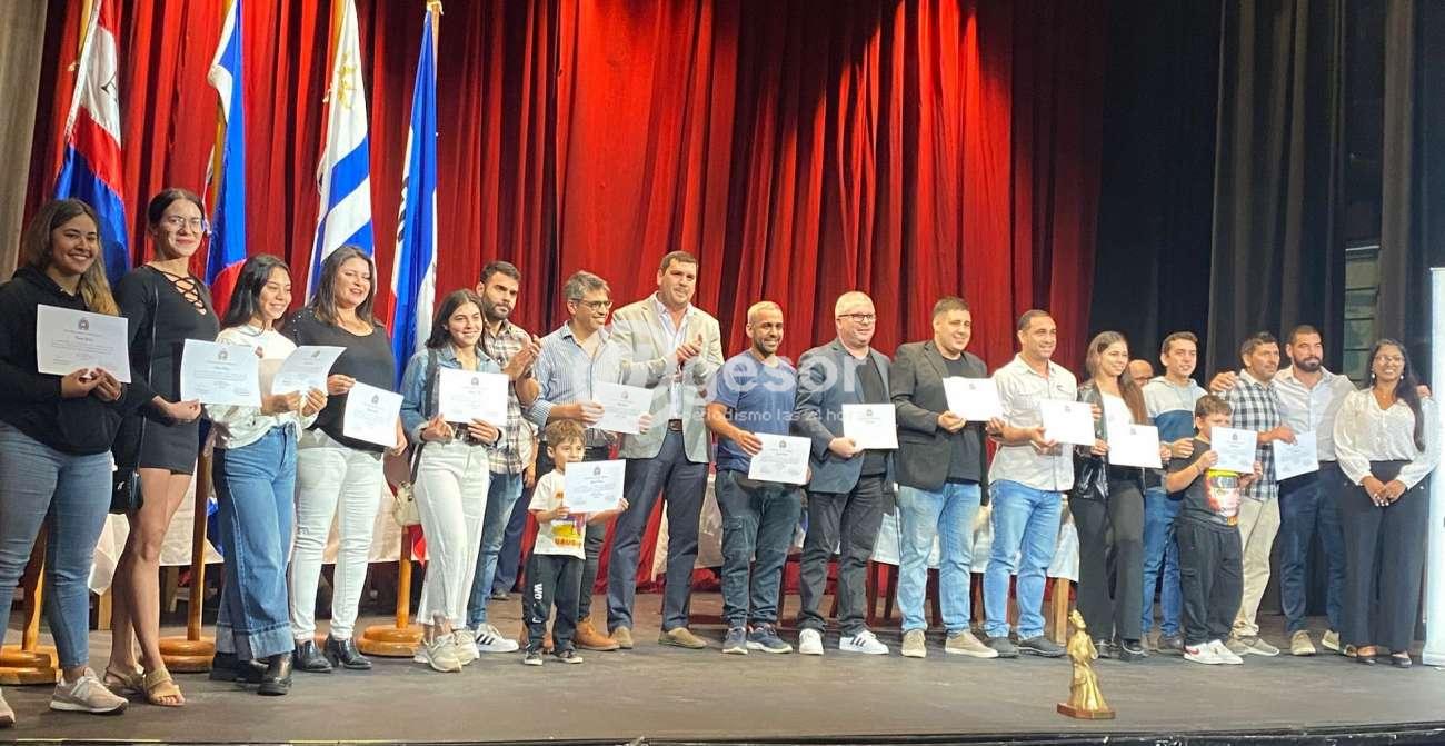 Los homenajes comenzaron con la entrega de diplomas a Alexis Rodríguez, funcionario policial que se desempeña en policlínica de Jefatura y también en EMS SVA y los funcionarios bomberos Hubert González y Jorge Sierra, quienes, como es de conocimiento público, en el cumplimiento de su labor de servicio y ante un hecho de extrema gravedad, protagonizaron, cada uno en su órbita de acción, actos heroicos poniendo en riesgo su propia vida.