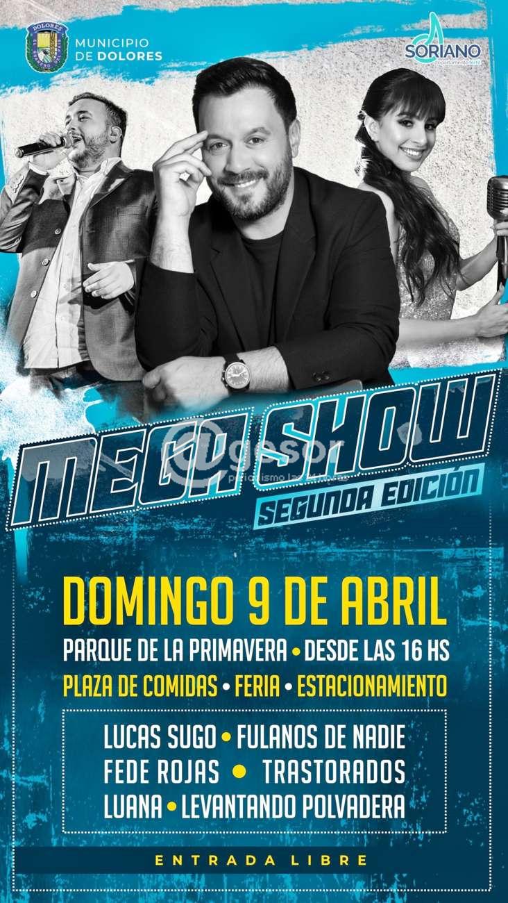 El Municipio de Dolores y la Intendencia de Soriano están invitando a la población a concurrir al MEGA SHOW en su segunda edición a desarrollarse en el Parque de la Primavera en Dolores, este domingo 9 de abril durante toda la jornada con diferentes actividades para la familia y un escenario con artistas de primer nivel tanto nacionales como locales.
