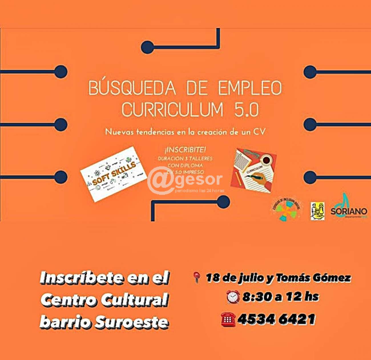Desde el Municipio de Dolores se informa de las inscripciones en el Centro Cultural del barrio Suroeste para participar de curso denominado Búsqueda de Empleo Curriculum 5.0 con ¨Nuevas tendencias en la creación de un CV¨.