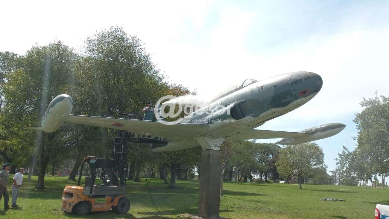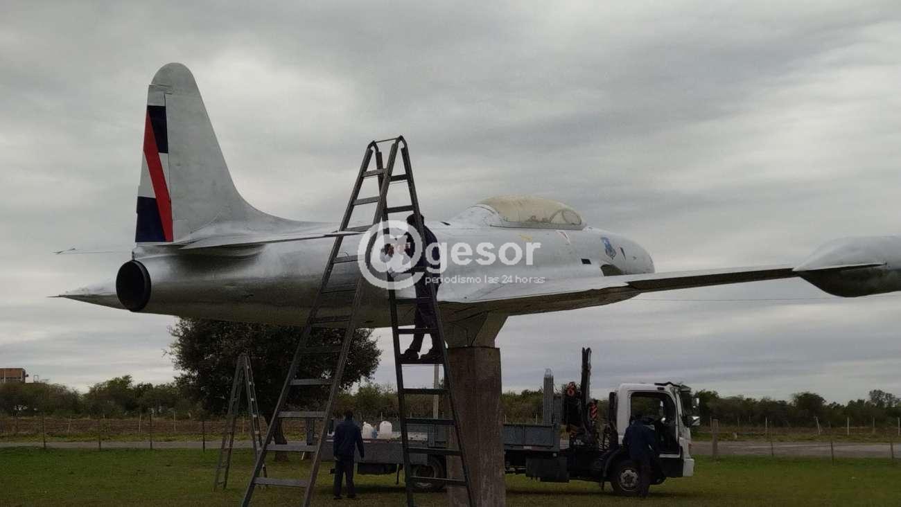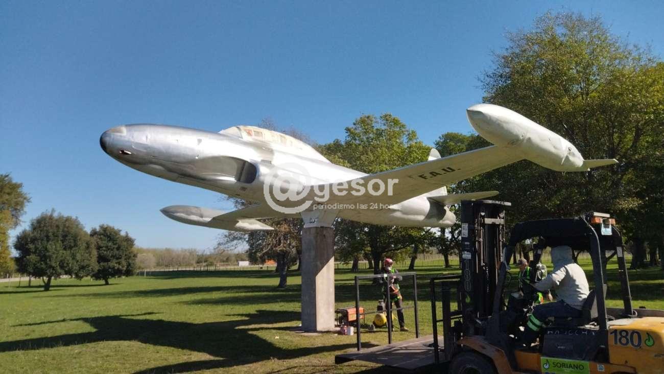 Este sábado culminó el proceso de restauración del avión T 33 FAU 207, ubicado en un pedestal en la ciudad de Mercedes en el espacio denominado "Aviadores de Soriano" situado junto al aeródromo "Ricardo Detomasi".