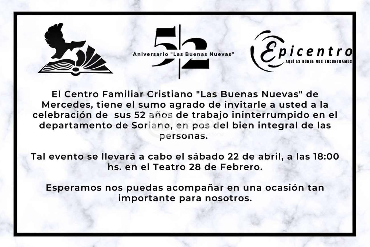 El Centro Familiar Cristiano ¨Las Buenas Nuevas¨ de Mercedes celebra sus 52 años de trabajo ininterrumpido en el departamento de Soriano, en pos del bien integrado de las personas.