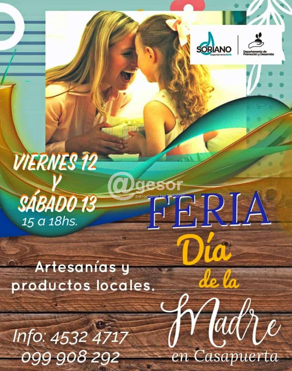 La Intendencia de Soriano a través de su Departamento de Promoción y Desarrollo está impulsando feria por el Día de la Madre durante los días viernes 12 y sábado 13 de mayo, a realizarse en Casapuerta con artesanías locales.