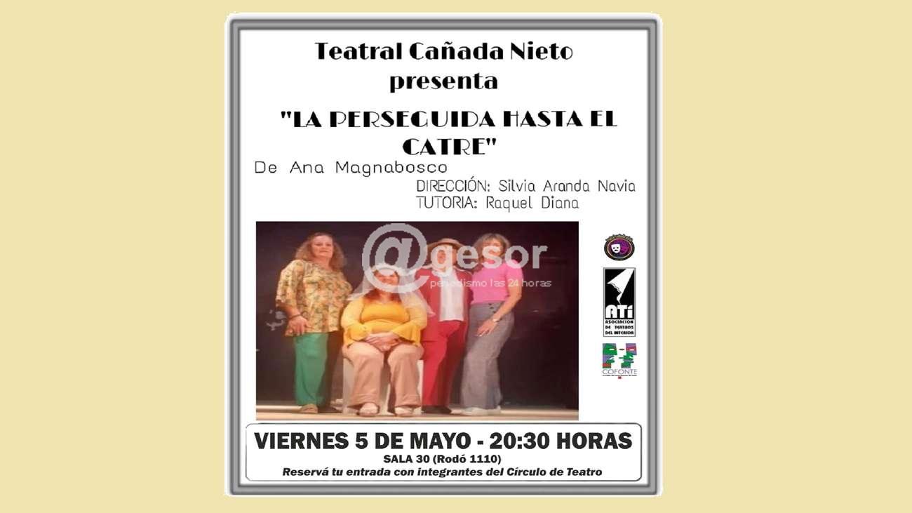 El grupo Teatral Cañada Nieto se presentará el viernes 5 de mayo en la sala del Círculo de Teatro, de Dolores, con la obra ´La perseguida hasta el catre` de la autora uruguaya Ana Magnabosco.