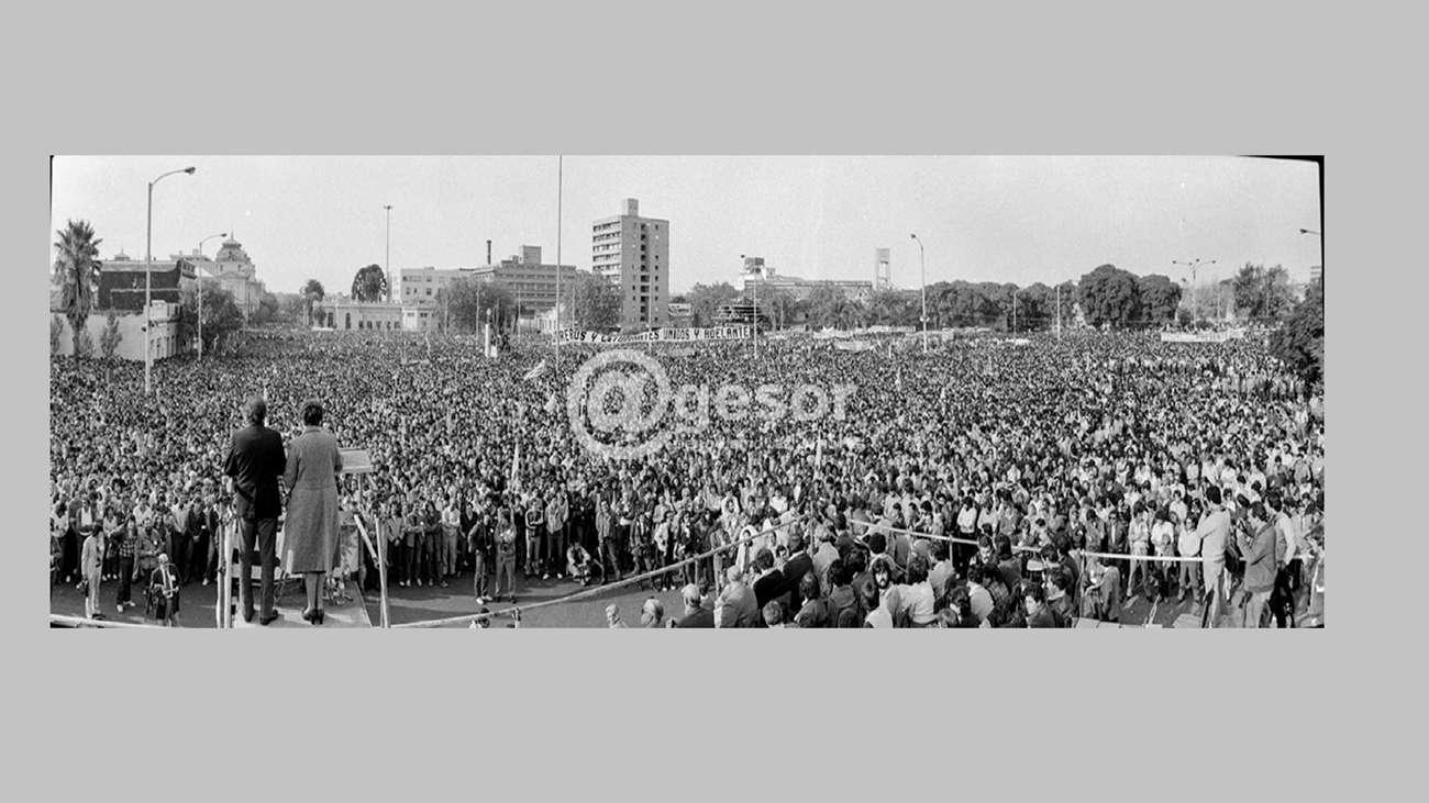 Los trabajadores uruguayos que hoy estamos aquí, también reclamando libertades, reclamando soluciones, reclamando por salarios, reclamando todo ello para que la paz, por fin se imponga en el Uruguay, decimos que conocemos perfectamente los tiempos difíciles y también críticos vividos por nuestro pueblo en los años previos a 1973.