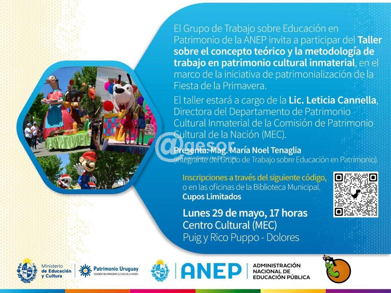 El Grupo de Trabajo sobre Educación en Patrimonio de la ANEP invita a participar del Taller sobre el concepto teórico y la metodología de trabajo en patrimonio cultural inmaterial, en el marco de la iniciativa de patrimonialización de la Fiesta de la Primavera.