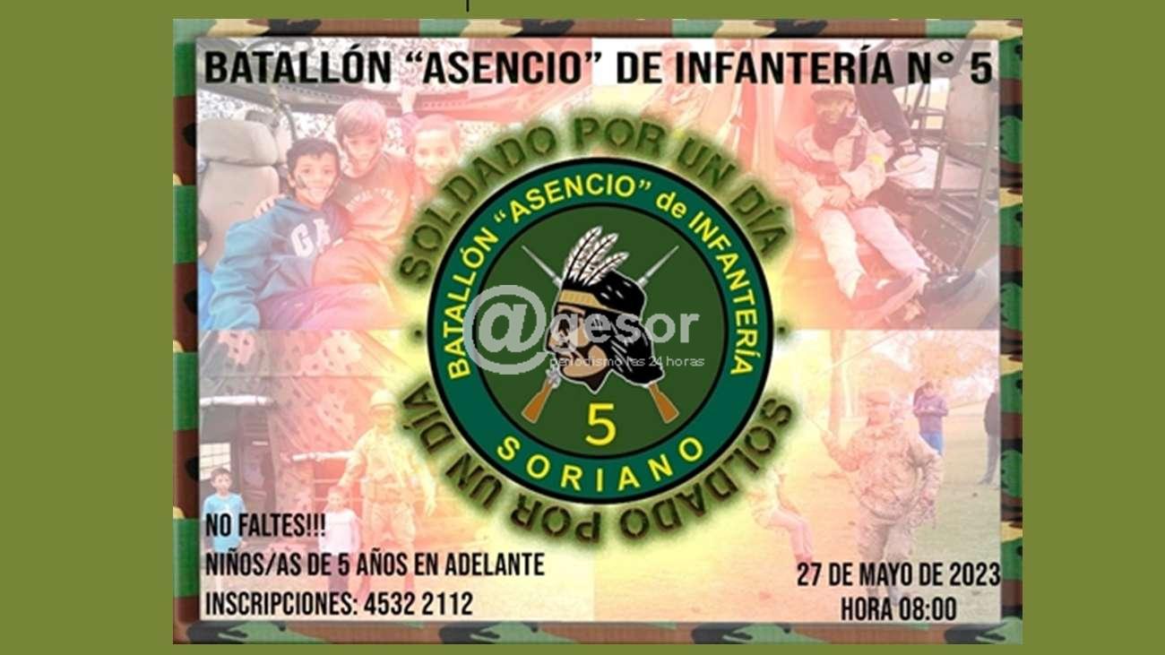 COMUNICADO: “El día sábado 27 de mayo del corriente año 2023, a la hora 08:00, con motivo de celebrarse el día del Soldado del Ejército Nacional, se realizará en nuestra Unidad una jornada de “SOLDADO POR UN DÍA” la cual será para niños/as a partir de los 5 años de edad, realizarán actividades propias de un Soldado de Infantería.