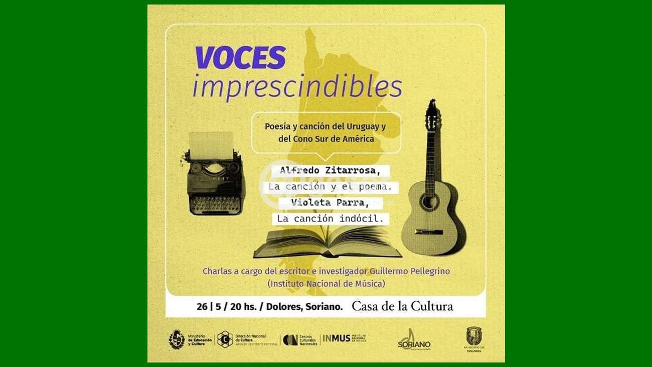 Poesía y canción del Uruguay y el cono Sur de América, será el título de la charla que brindará el escritor e investigador Guillermo Pellegrino. Tocando temas como Alfredo Zitarrosa,La canción y el poema; Violeta Parra, La canción indócil.