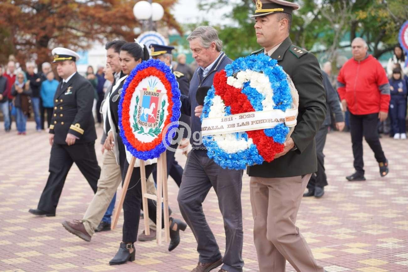 En la mañana de este jueves se llevó a cabo el acto conmemorativo de un nuevo aniversario de la Batalla de Las Piedras y también del Día del Ejército Nacional, con la presencia del Intendente de Soriano, Guillermo Besozzi, la Presidenta de la Junta Departamental de Soriano, Andrea Nievas, los Diputados María Fajardo, Enzo Malán, representantes del Batallón Asencio, de la Jefatura de Policía de Soriano, del Destacamento de Bomberos y de la Prefectura del Puerto de Mercedes, de entidad organizadora Asociación Patriótica de Soriano, de instituciones sociales, culturales, escuelas, delegaciones civiles y militares, además de autoridades de distintas instituciones oficiales.