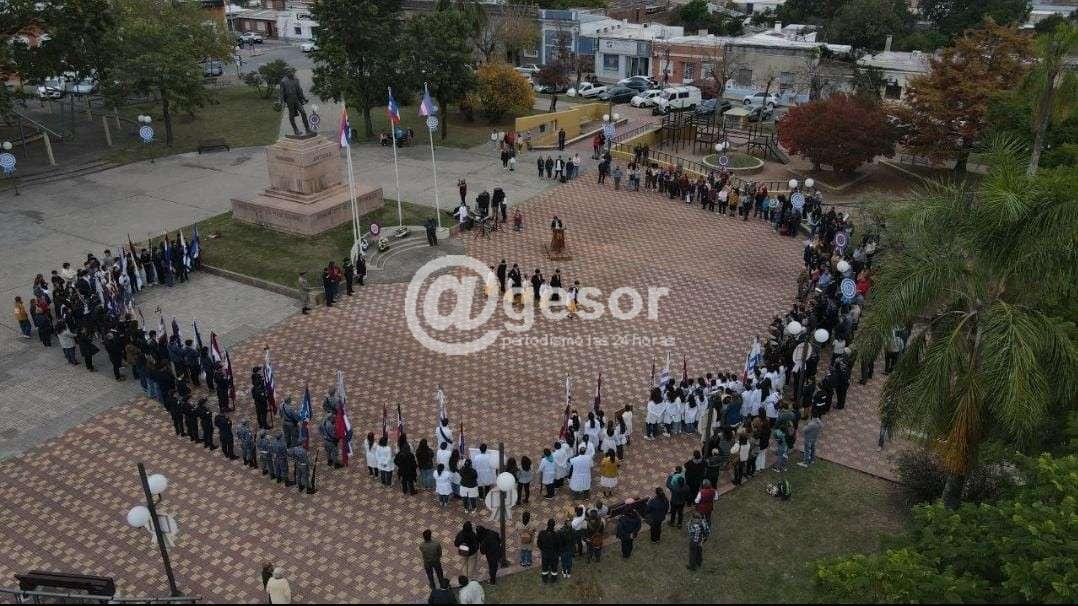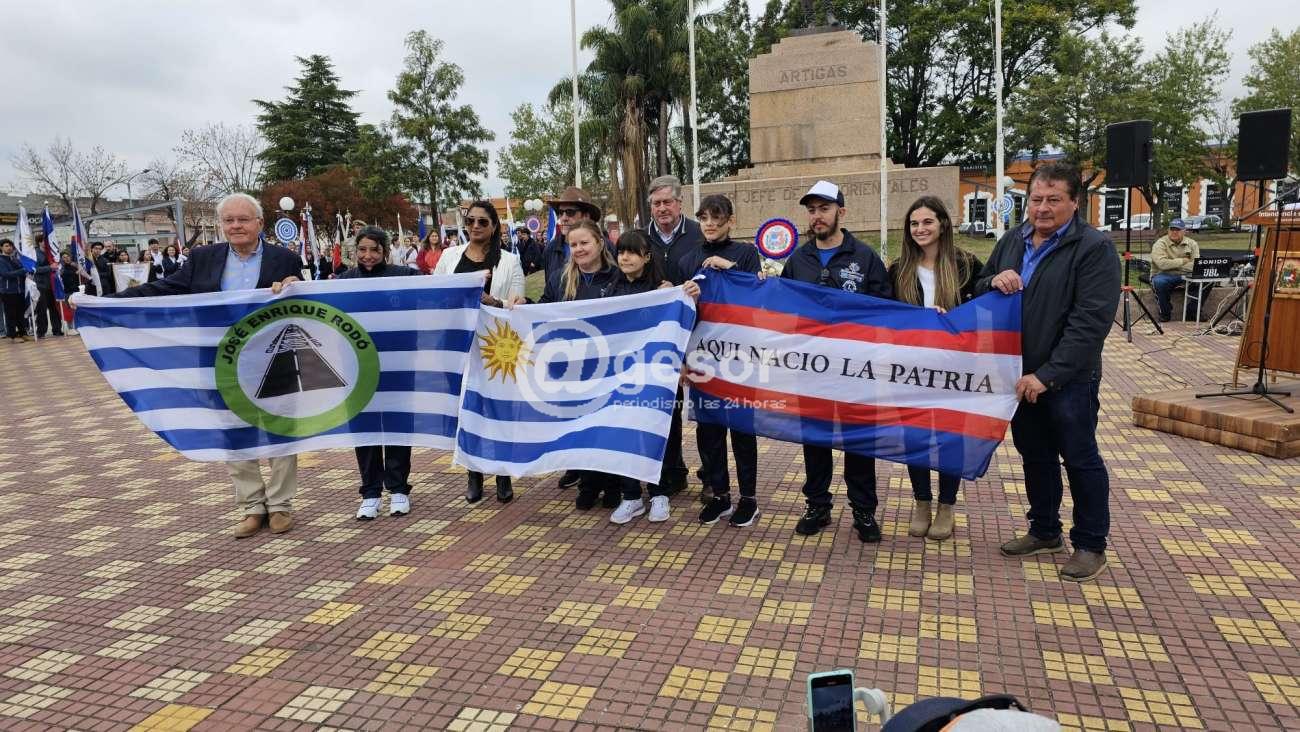 Comenzó con la entonación del Himno Nacional uruguayo, continuando con la oratoria, luego la colocación de ofrenda floral al pie del monumento el Gral. José G. Artigas, con toque de clarín.