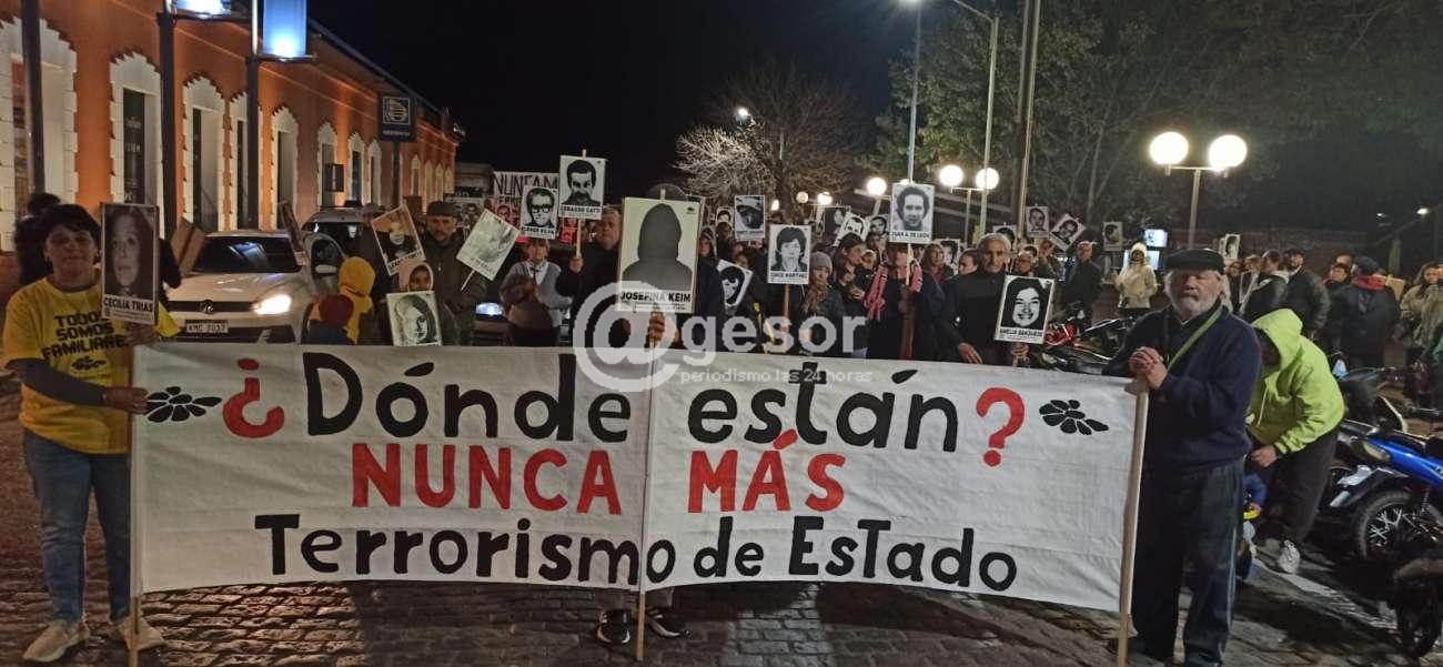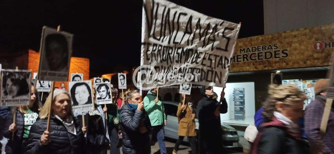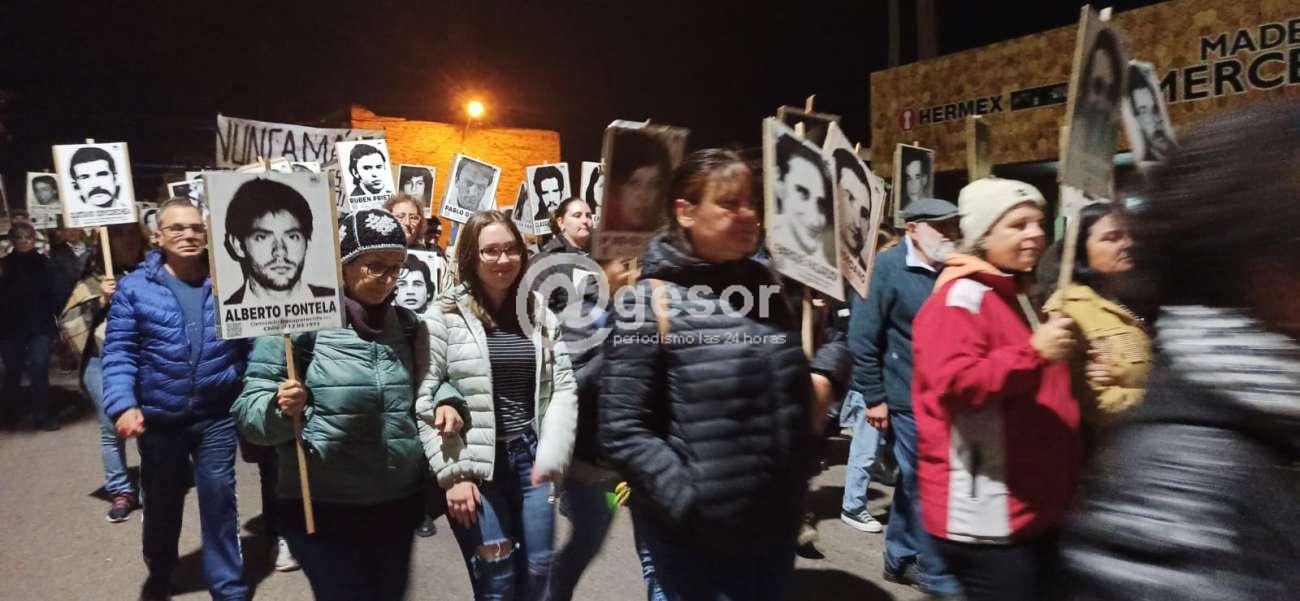 Posteriormente comenzaron a recorrer las calles hasta llegar al Espacio Memoria, que recuerda a los detenidos desaparecidos del departamento.