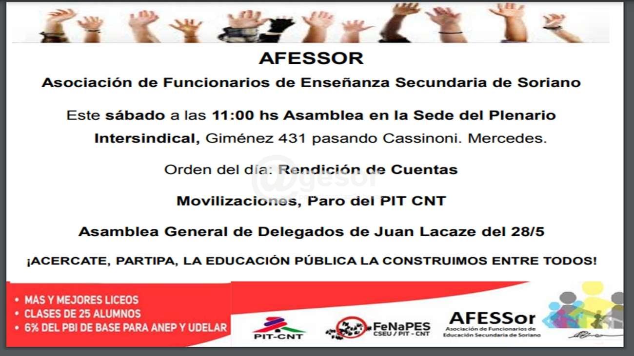Este sábado a las 11:00 hs Asamblea en la Sede del Plenario Intersindical, Giménez 431 pasando Cassinoni. Mercedes.