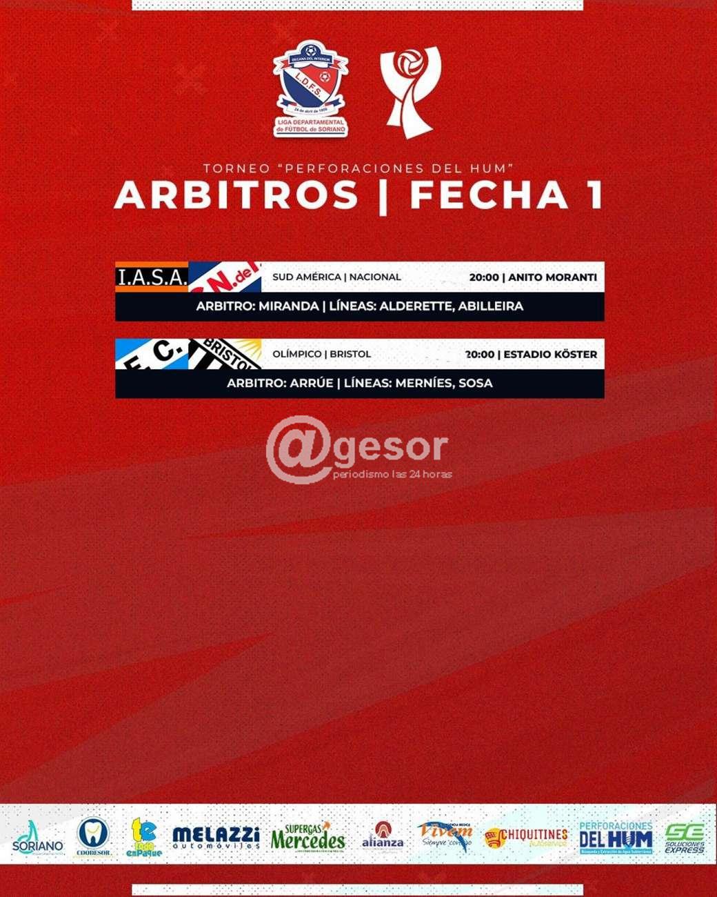 También este miércoles 31 desde las 20.00 horas en el estadio "Luis Köster" se enfrentan Olímpico - Bristol, arbitrando Arrúe, Mernies y Sosa.