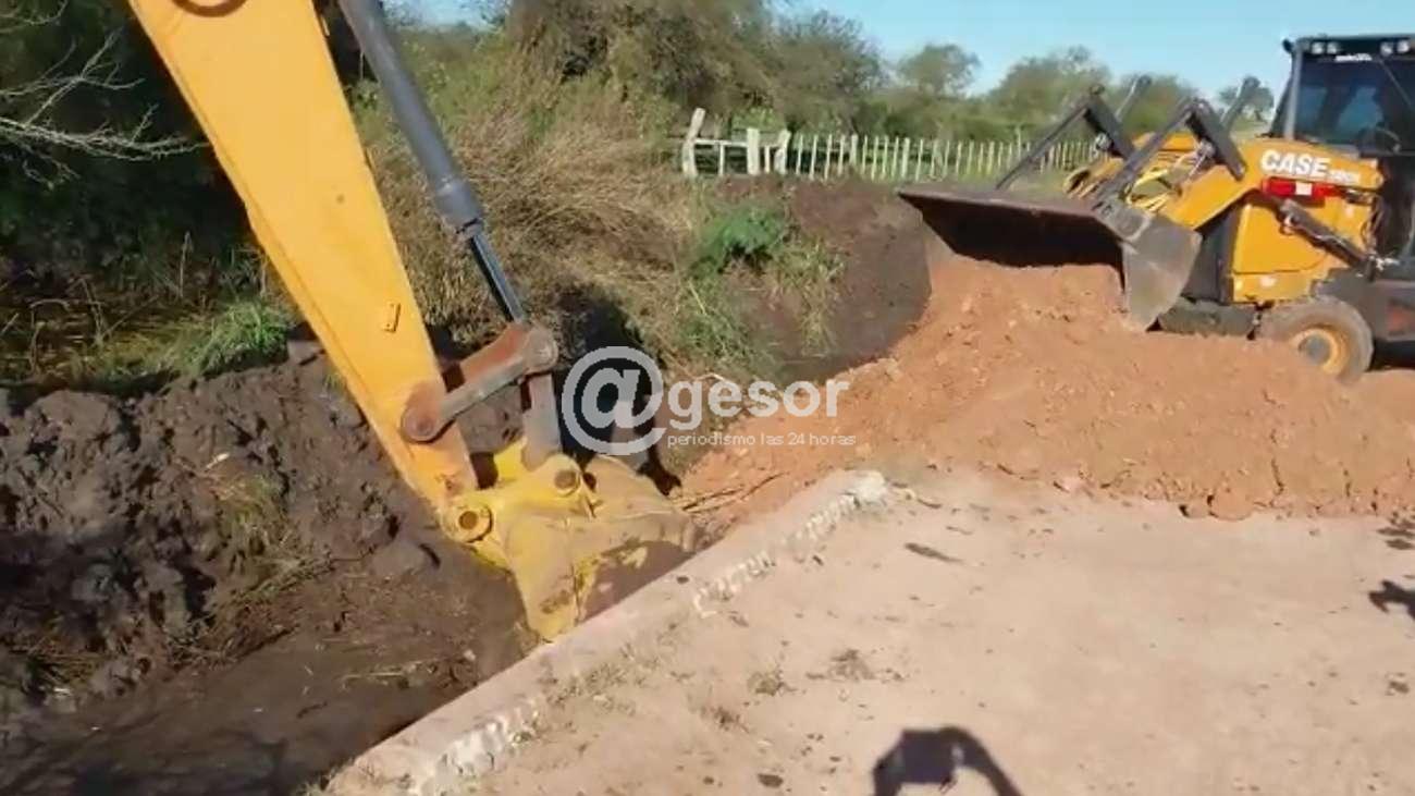 Es intenso el trabajo de una cuadrilla del departamento de Obras de la Intendencia para habilitar un pasaje paralelo al puente que resultó dañado en el camino del Paso de la Cruz.