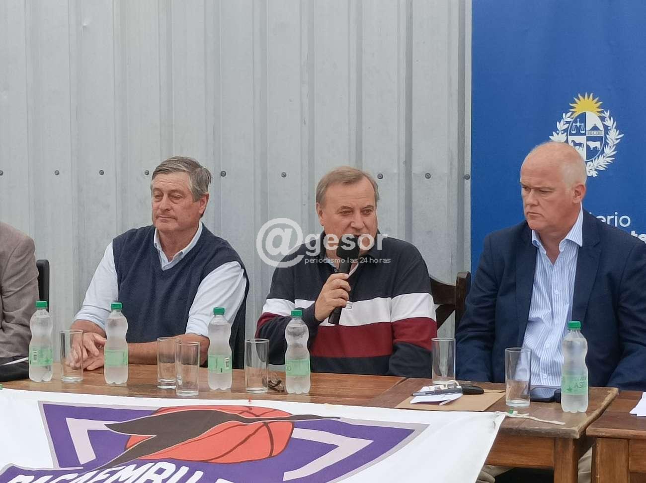Este ministerio se ha fijado como política que la firma de los convenios no sean en un frío escritorio de Montevideo, si no salir a las instituciones, conocer el trabajo que vienen haciendo, conocer a los dirigentes, a los socios, y después estampar las firmas y hacer las obras, a los pocos meses y al año volver y ver la obra concretada. Queremos que sea no solamente una firma fría si no que haya un ida y vuelta entre el MTOP y las instituciones y conocer cual es la función que llevan adelante".