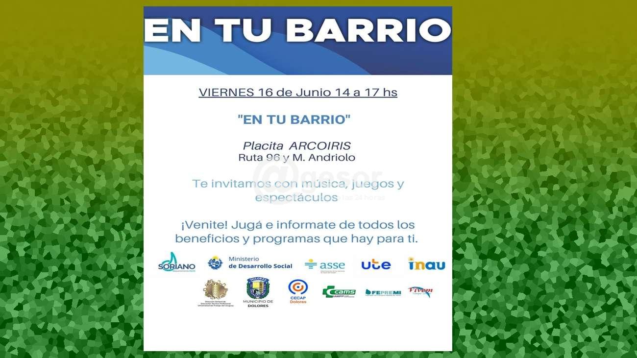 En tu barrio se trata de una campaña que busca acercarse a la población de cada barrio de la ciudad para informarles sobre las propuestas de actividades y servicios que tiene para ofrecer ya sea el Municipio, MIDES, ASSE, UTE, INAU, UTU, CECAP, entre otra.