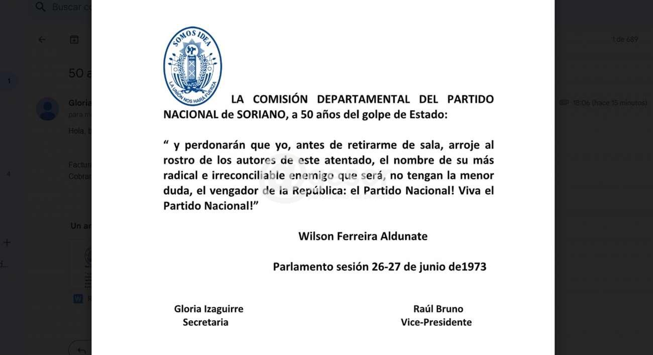 LA COMISIÓN DEPARTAMENTAL DEL PARTIDO NACIONAL de SORIANO, a 50 años del golpe de Estado: