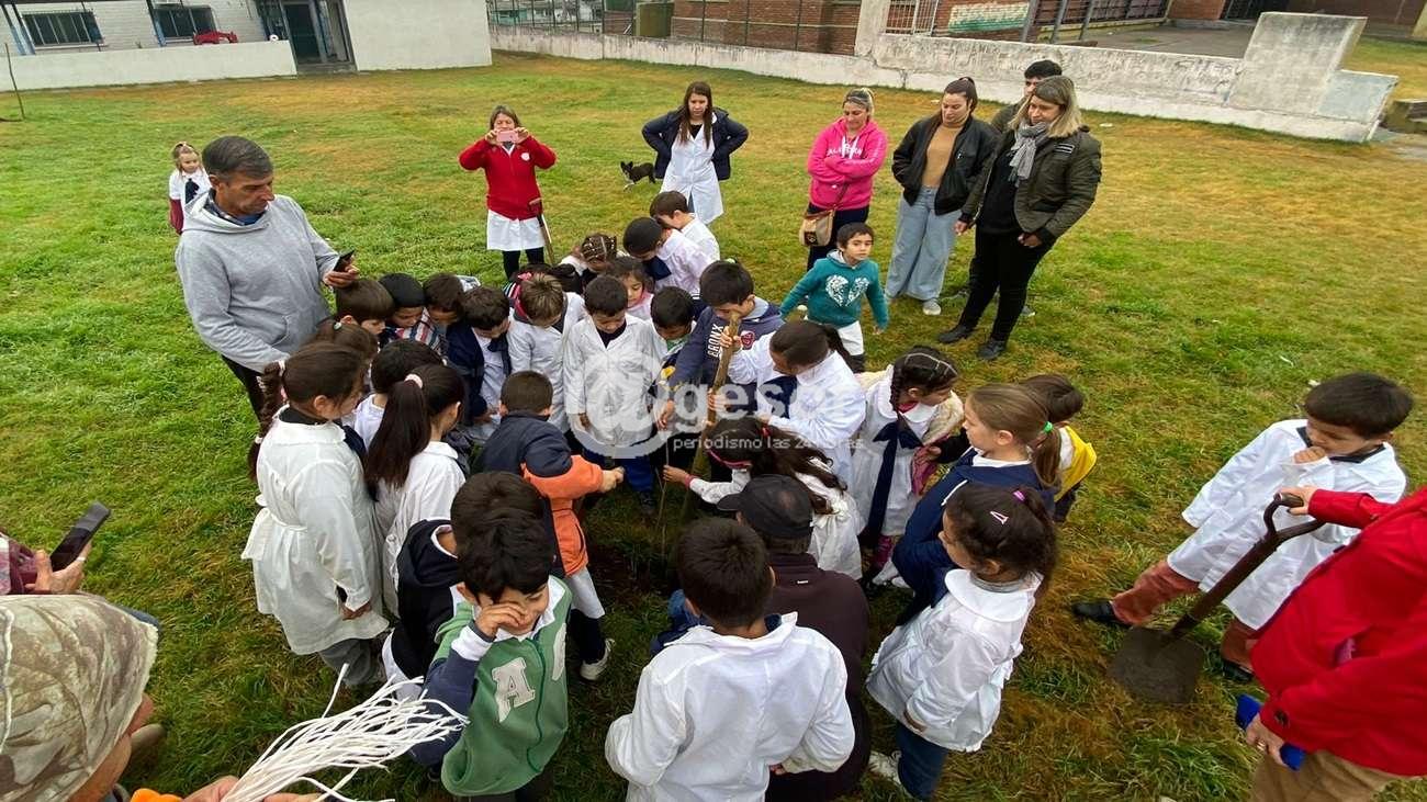Se plantaron 35 ejemplares de diversas especies, 18 en el entorno de la misma escuela que incluye veredas y en plaza Paul Harris, destacando especies como: fresnos, lapacho rosado, jacarandá y leucaena.