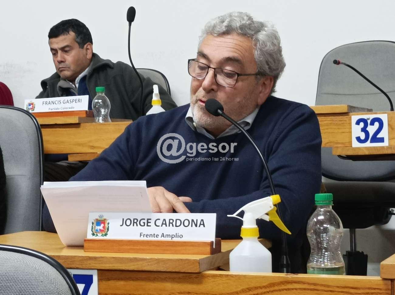 El Edil Jorge Cardona fue el designado por la bancada del Frente Amplio de hablar en la sesión solemne, homenaje a los ediles que el 28 de junio 1973 se reunieron, como acto de rebelión contra la disolución de las juntas departamentales y del Poder Legislativo en general, tras el golpe de Estado cívico militar dado el 27 de junio 1973.