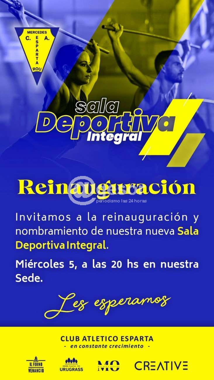 Este miércoles 5 de julio a las 20.00 horas, el Club Atlético Esparta de Mercedes estará reinaugurando y nombrando la nueva sala deportiva integral.