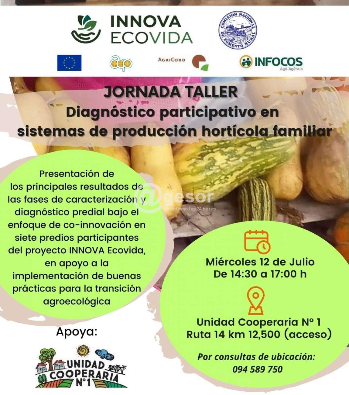 Este miércoles 12 de julio de 14.30 a 17.00 horas estará desarrollándose Jornada Taller: Diagnóstico participativo en sistemas de producción hortícola familiar en Unidad Cooperaria Nº 1 con acceso en Ruta 14 km 12,500 por consultas de ubicación 094 589 750.