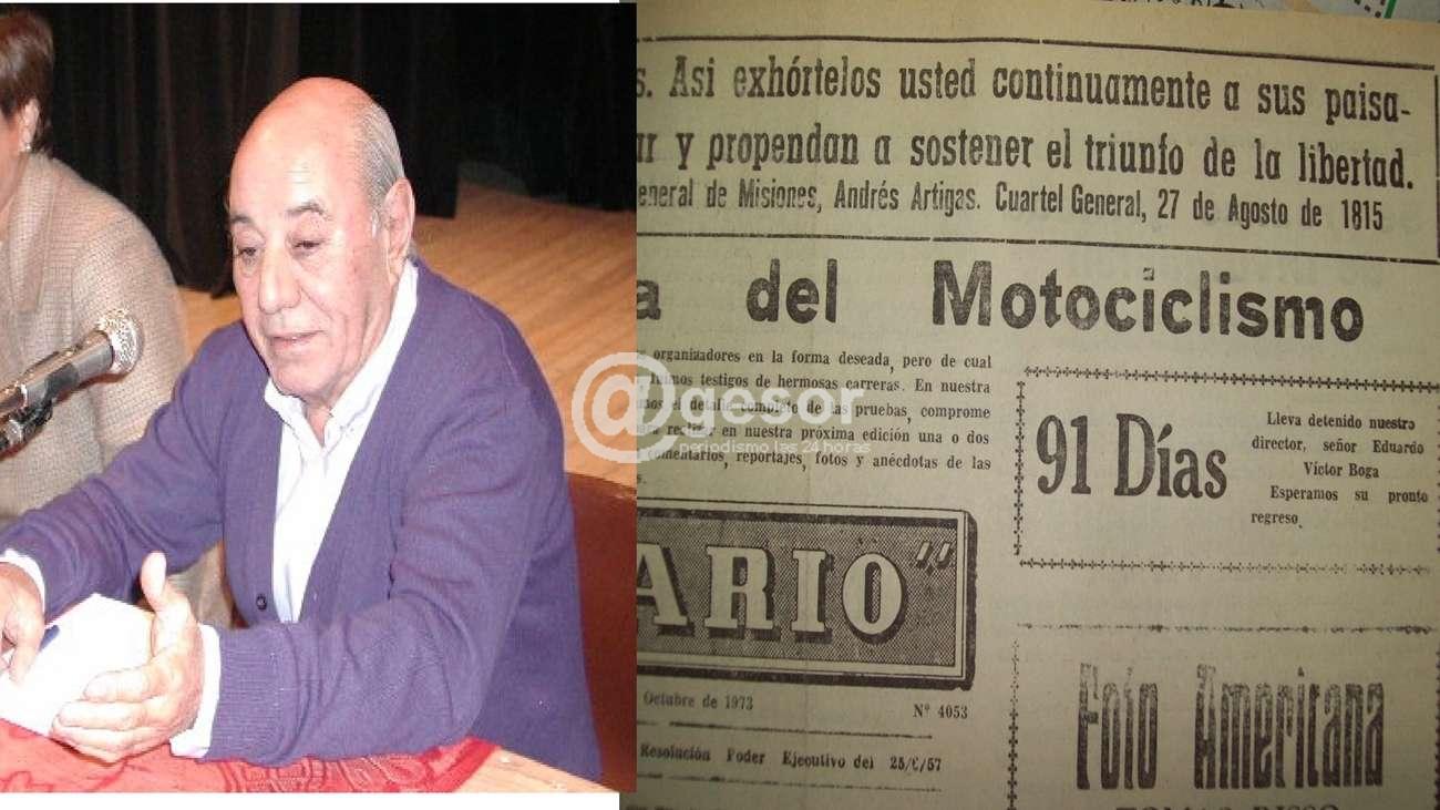 (*) foto: Eduardo Víctor Boga, junto a una de las ediciones de Centenario de 1973, donde se iban contando los días que su director llevaba detenido.