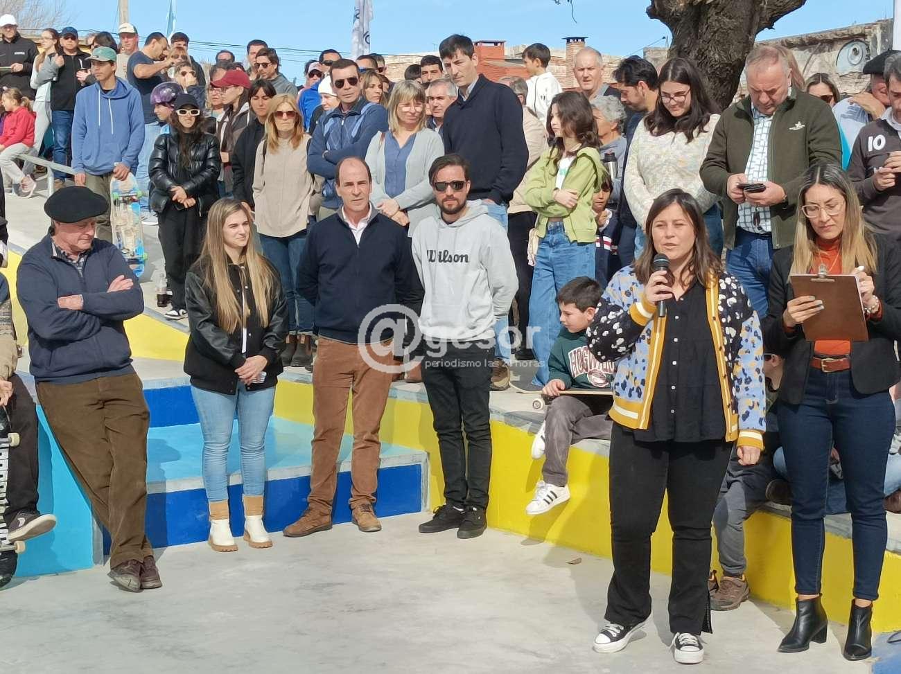 Mientras tanto la Directora de Arquitectura de la Intendencia de Soriano, Dra. María Celia Barreiro, responsable de la obra por el lado de la comuna en cuanto a la infraestructura de la pista de skate inaugurada al mediodía de este domingo en la Manzana 19 en el inicio del parque Guernica de Mercedes, con un entorno repleto de público y decenas de niños, adolescentes y jóvenes practicando deportes relacionados al skate, también a mini bicis y patines roller, un grupo de ellos llegados de otros departamentos para hacer exhibiciones, se refirió a este nuevo espacio para la practica de este tipo de disciplinas.