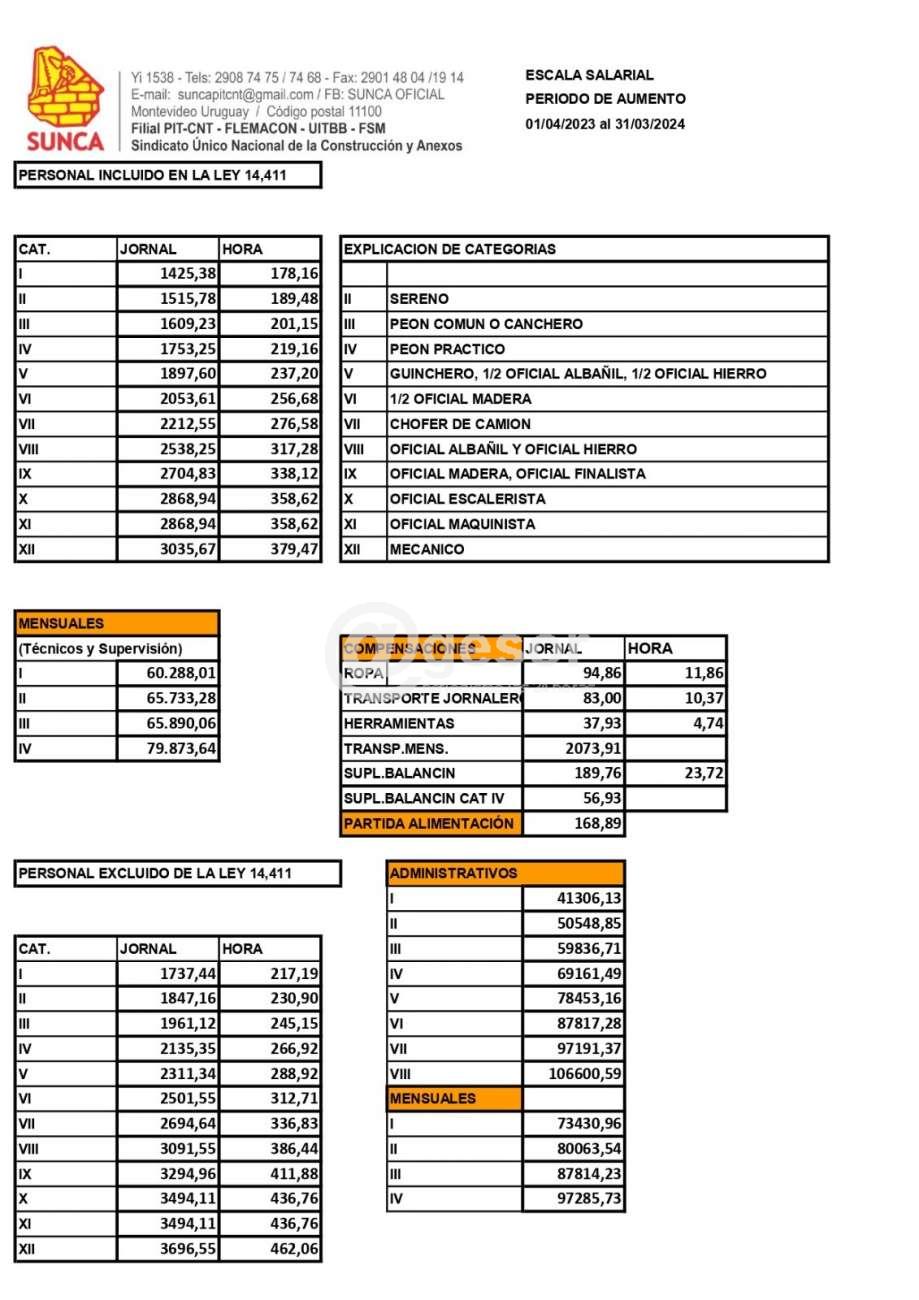 Compartimos escala oficial del laudo para el grupo 09 sub grupo 01 por el periodo 1-04-23 al 31-03-2024 (ver fotografía adjunta)"