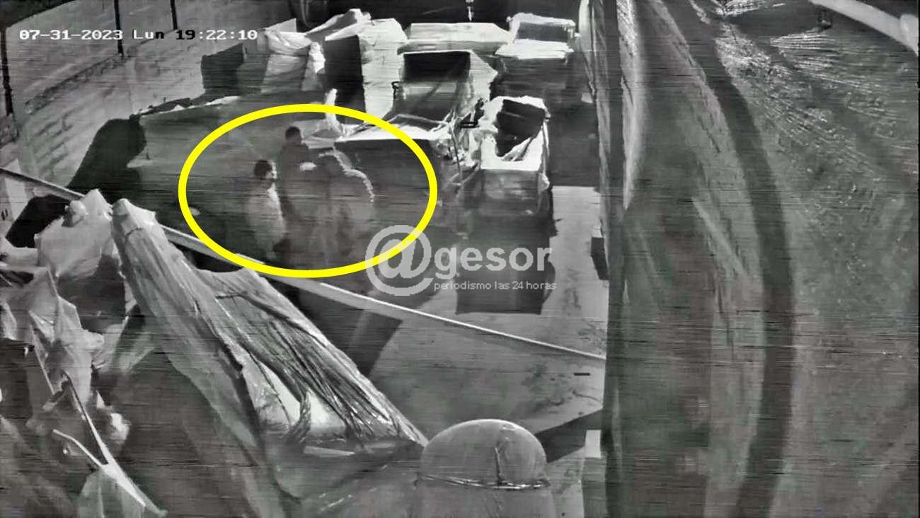 Este mismo lunes, es decir pocas horas después, a las 19.22 horas como lo marca la fotografía extraida de la filmación, en este caso se logra avistar por las cámaras de videovigilancia, tres masculinos dentro de uno de los locales nuevos de las obras, donde se encuentra la maquinaria nueva embalada aun, allí se les aprecia, dándose cuenta a la Policía y concurre personal de la propia empresa, lográndose detenerlos, tratándose de dos mayores y un menor. De acuerdo a lo que se señaló a @gesor buscaban en esta ocasión robar cables y también tenían interés en la hormigonera, a la que se les ve cargarla en las imágenes de la cámara de videovigilancia.